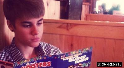 Selena parece realmente amar o restaurante Hooters e ser uma namorada super divertida. Ela acabou de postar uma foto em seu Instagram de Justin olhando o menu do restaurante, que é conhecido, pelas garçonetes “boazudas”. Confira o que ela disse: